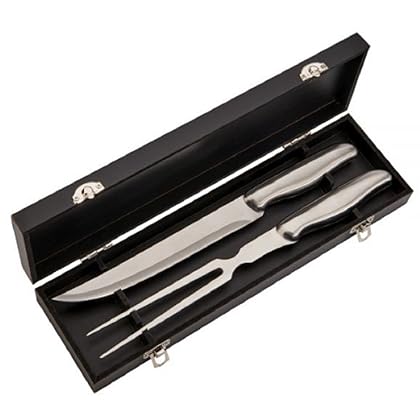 2 Piece Stainless Steel Carving Set in Black Box, 12.25" L is best for youThis stainless steel carving knife (12.25 long) and fork (12..25' long) set features smooth stainless steel easy to grip handles and includes a black box with silver color dual metal hinged and clasp closure. The box measures 13' x 3.75' x 1.75' (closed). The box lid can be personalized (not included). Great for the home and a great wedding gift or house warming gift. Gift Box.
