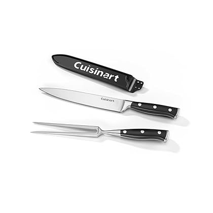Cuisinart Classic 2-Piece Triple Rivet Carving Set is best for youCuisinart® Classic 2-Piece Triple Rivet Carving Set Designed to allow you to easily lift, turn and carve poultry and roasts, this 2-piece Classic Triple Rivet Carving Set from Cuisinart features full tang, high-carbon steel blades mated to comfortable ergonomic handles for comfortable, precise use. Cuisinart Classic 2-Piece Triple Rivet Carving Set makes it easy to lift, turn and carve a Thanksgiving turkey, roasted or baked poultry, and roasts Black ergonomic handles with control grips are secured to the blade and neck with three stainless steel rivets for comfortable and precise handling Carving knife features a razor-sharp straight edge for cutting ease Sturdy pointed tines easily pierce through meats Full tang for strength and durability Forged high-carbon stainless blade and tine construction ensures lasting use Stain resistant Set includes: 8' carving knife 8' carving fork Stainless steel and polypropylene Hand wash Lifetime manufacturer's warranty Imported SKU # 45426186