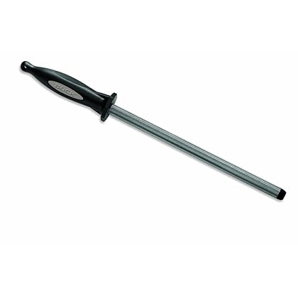 Are you afraid of cutting yourself when honing your knife? Relax, you don't have to be! We've designed this knife sharpener to be as safe as can be. It comes with an ergonomic handle that gives you superior grip, and keeps your hand away from the blade thanks to its length. The base is also rubberized to provide maximum stability. No more dealing with risky sharpening stones!the Buck Knives 97082 EdgeTek® Tri-Grit Ultra Steel Diamond Knife Sharpener 10" designed with a unique feature called “edge grip. ” What does this mean? Well the bottom of the sharpener has been designed to allow the sharpener to rest on the edge the counter top or table. Why is this helpful? Sometimes when you sharpen a large chef’s knife with a smaller sharpener, you might drag the tip of the knife across the counter top. This can damage the knife or worse the countertop. So sharpening on the edge with the edge grip allows the knife to pull through the slots from heel to tip. Of course you can still use the Edge Grip on top of the surface but isn’t it nice to have flexibility when sharpening if you need it? The bottom is made of a non-slip material that allows for safe and sturdy sharpening. Buck Knives 97082 EdgeTek® Tri-Grit Ultra Steel Diamond Knife Sharpener 10" is best for youThis Great hunting blade sharpener is used for the outdoors. This is a product of the company Buck the item dimensions are length (in) 2.625 width (in) 1.75 height (in) 15.75